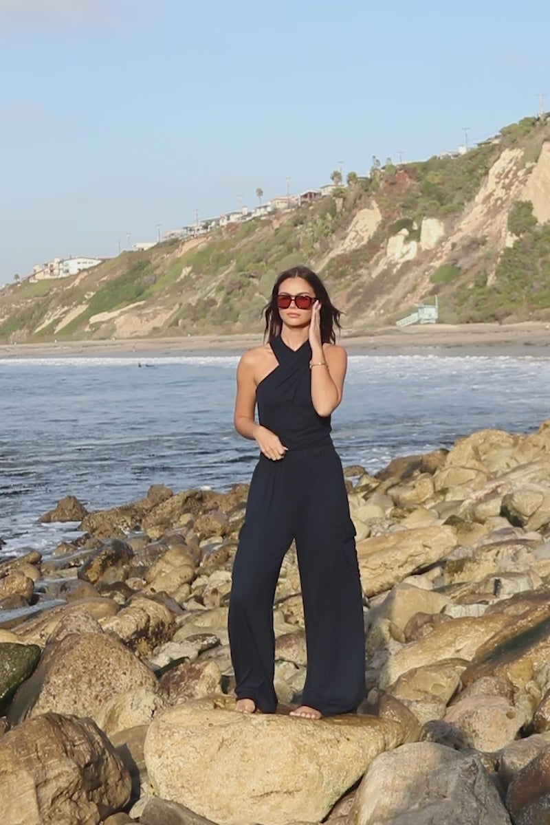Date night defined by Marina. Soft sexiness is created in this twist neck sophisticated halter top. Made of a soft fabric that offers instant effortlessness to any outfit. WEAR WITH EVERYTHING, dressed up or down.