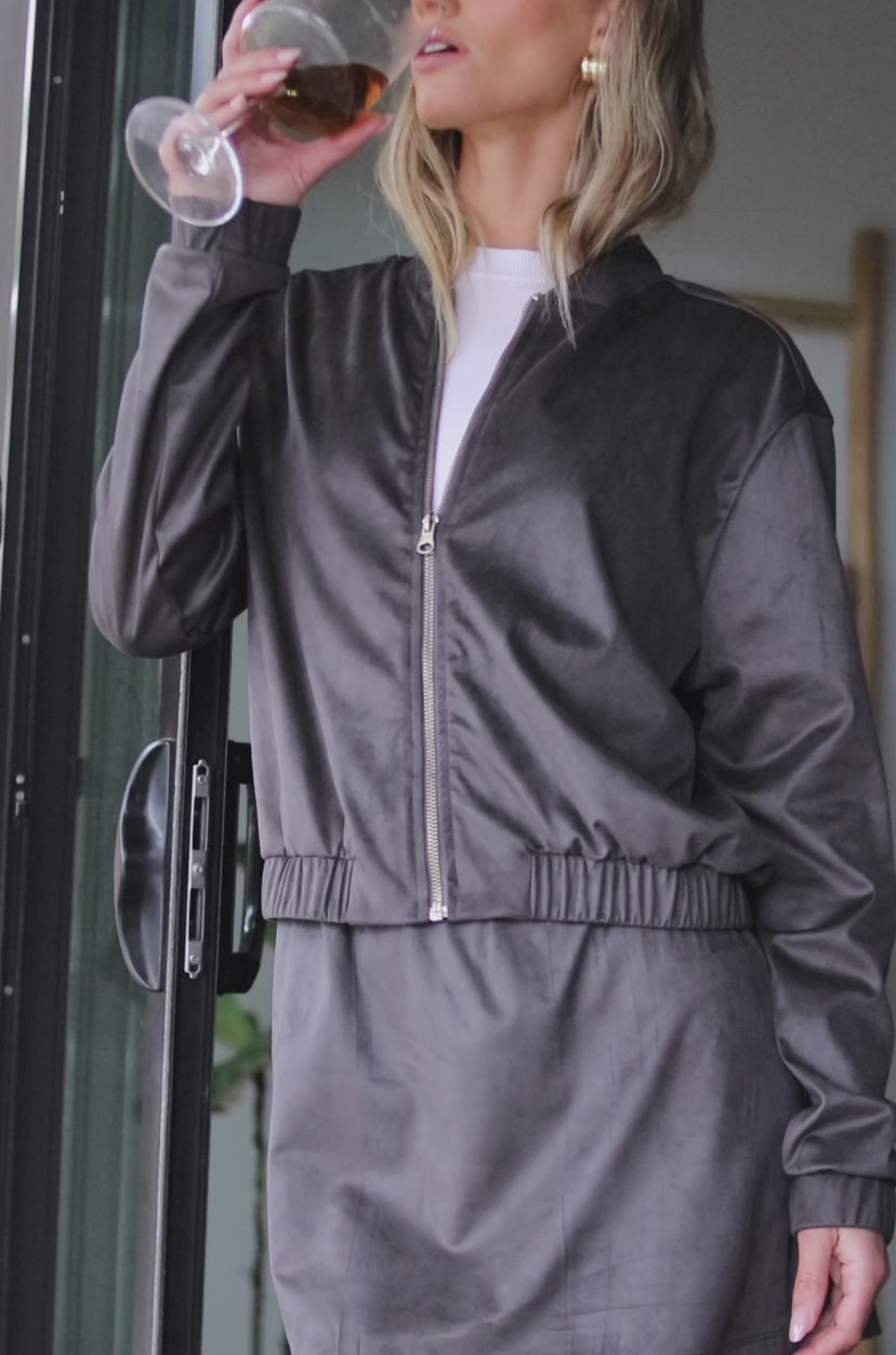THE EIGHTIES VEGAN SUEDE BOMBER JACKET